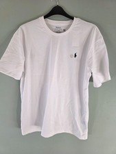 The product is a Ralph Lauren T-Shirt for men in orange, size large. This classic shirt features a solid pattern with a crew neck and short sleeves. Made of cotton, it is machine washable and has a pocket detail, making it perfect for summer, fall, and spring seasons. The shirt is branded with the Polo T-Shirt logo, adding a touch of style to the wardrobe staple.