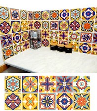The stickers are 150mm x 150mm. It is very easy to use these stickers. Patience is the only thing you need as you have to get them on level, so best not to rush. Everything else is a doddle, you'll be amazed at the difference it will make to your kitchen or bathroom.