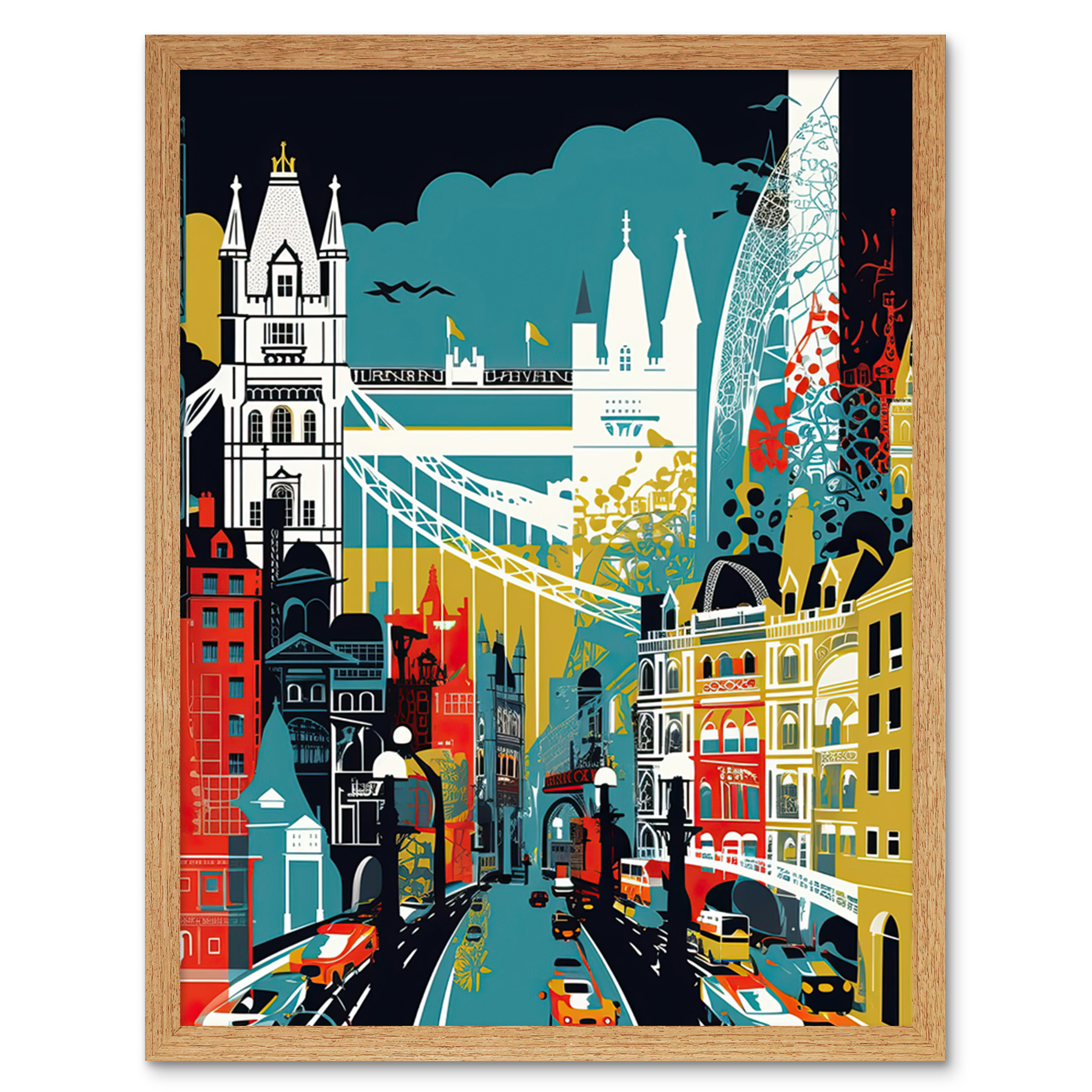 Artery8 Wall Art Print London Iconic Landmarks Modern Abstract Cityscape Art Framed in Light Oak Size: W12" x H16" Light Oak W12" x H16"