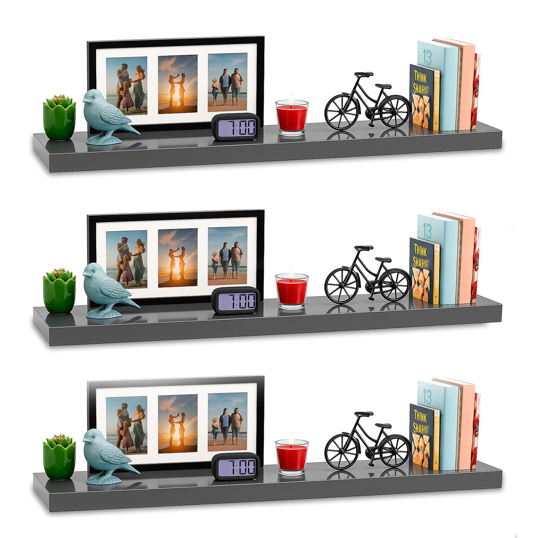 These decorative shelves can be assembled easily with the help of instructions. With a thickness of 3.7cm and a hidden wall bracket the shelf appears to float on the wall. Hidden wall bracket and fittings included.