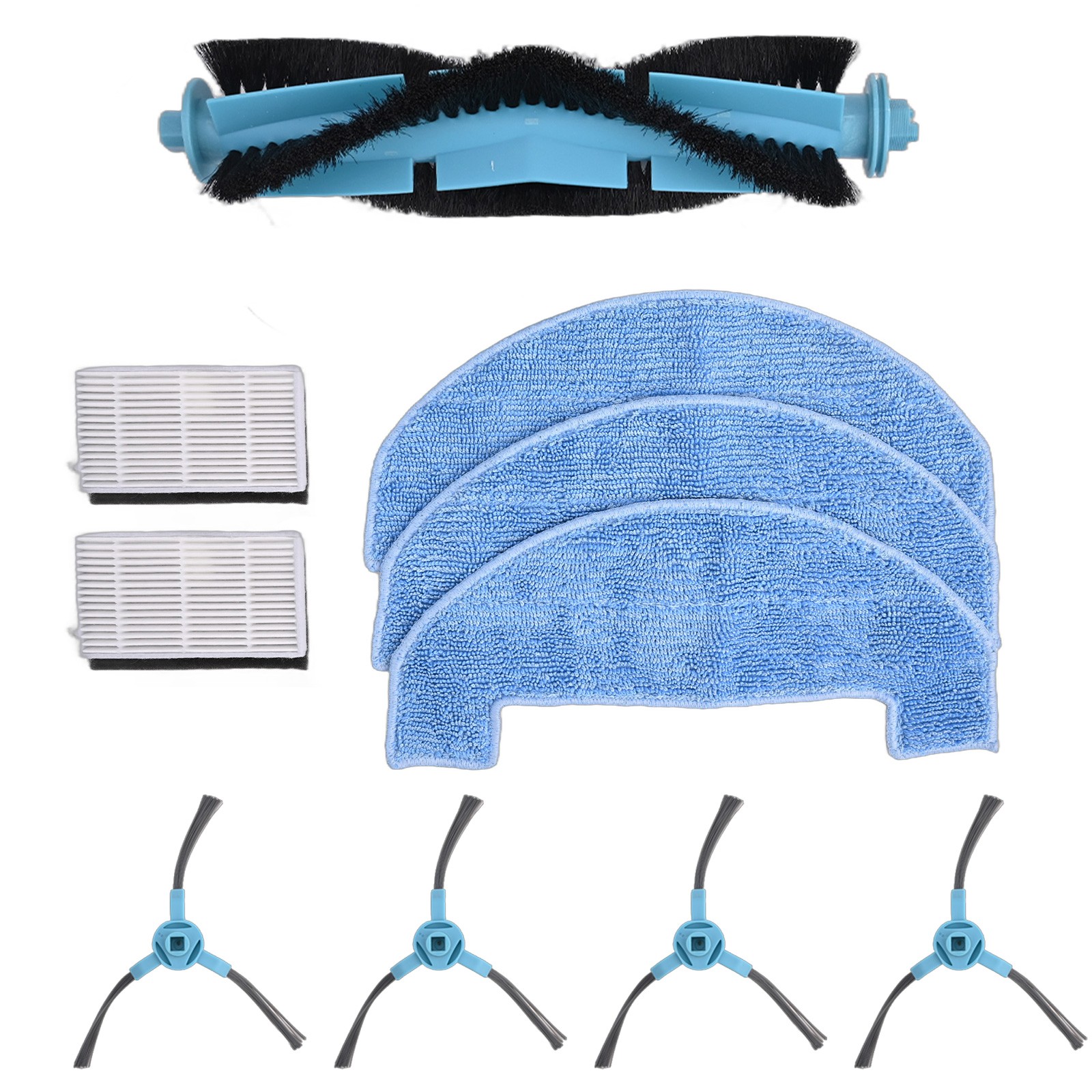 Mop Cloth:You can easily attach the provided mop cloth to the vacuum cleaner, allowing for a deep and effective mopping use to achieve spotless floors. A: 1 main brush + 3 mop cloths + 4 side brushes + 2 filters.