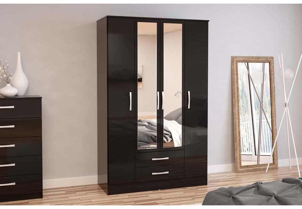 Wardrobe, Lynx Wooden High Gloss 4 Door 2 Drawer Storage with 4 Colour Options | ✔ Check At Store | £404.99 |