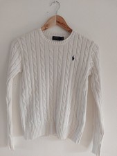 POLO Ralph Lauren cable knit 100% cotton white jumper size XS uk 6 | ✔ Check At Store | £29.82 |