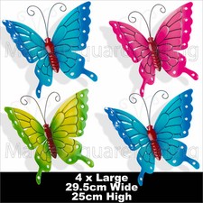BUTTERFLIES X 4 COLOURED OUTDOOR LARGE METAL BUTTERFLY GARDEN BLUE GREEN PINK | ✔ Check At Store | £8.96 |