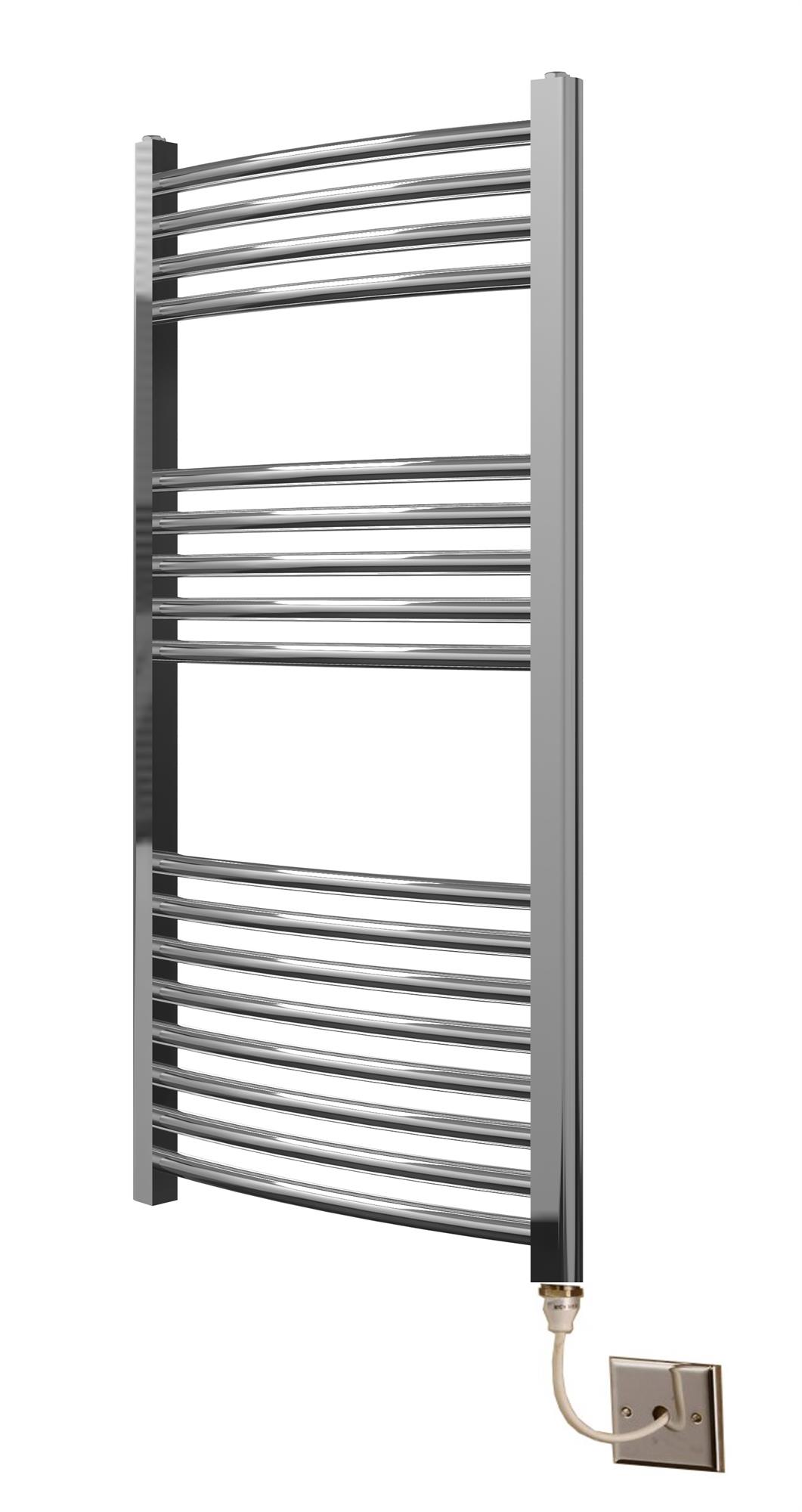 Curved Chrome Electric Towel Rail Thermostatic 300W Element 500mm x 1000mm