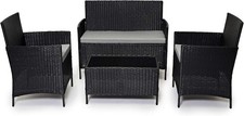 Seat Size: 105W x 46D x 38H cm (Loveseat), 53W x 46D x 38H cm (Chair). Back Size: 105W x 39H cm (Loveseat), 53W x 39H cm (Chair). Weight Capacity: 240 kg (Loveseat), 120 kg (Armchair), 30 kg (Table). The set includes a spacious double sofa, two elegant armchairs with modern rope-woven detailing, and a sleek coffee table creating a coordinated and contemporary look for your garden or patio.