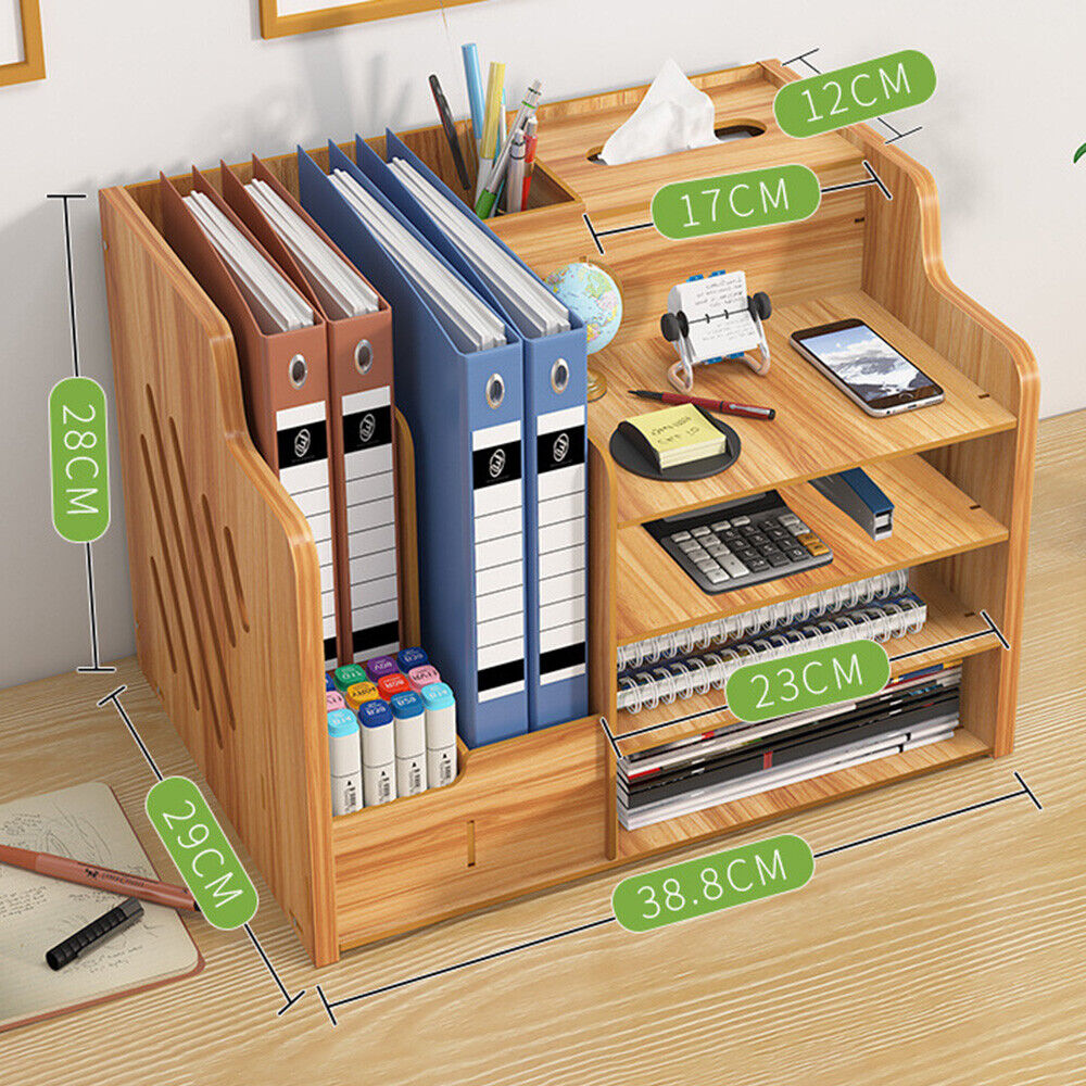 Wooden organiser desk table office organizer Book Shelf wood Document holder UK