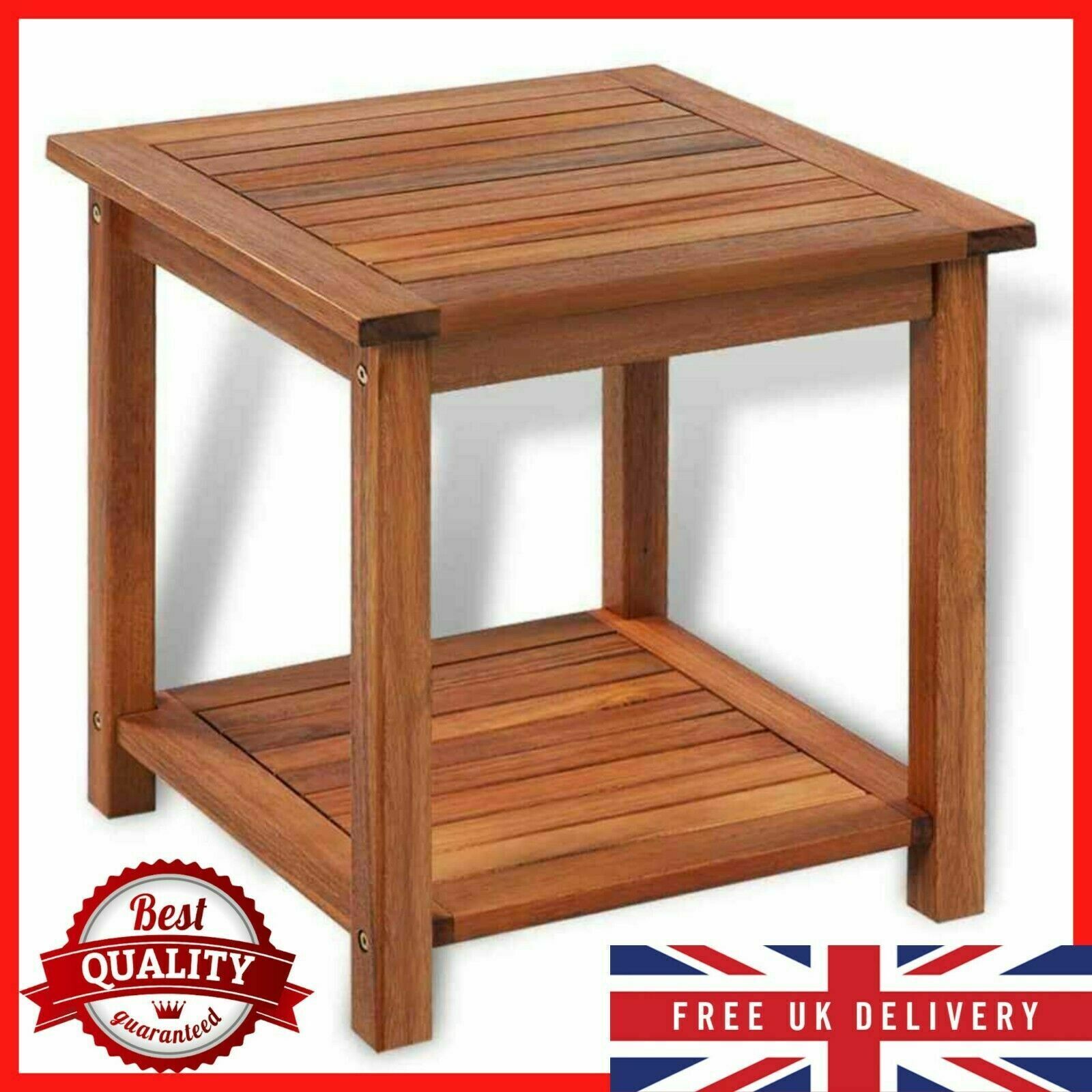 This wooden side table will make a great addition to your room decor. Made of solid acacia wood, the table is weather-resistant and highly durable. Assembly is easy. Material: Solid acacia wood with an oil finish.