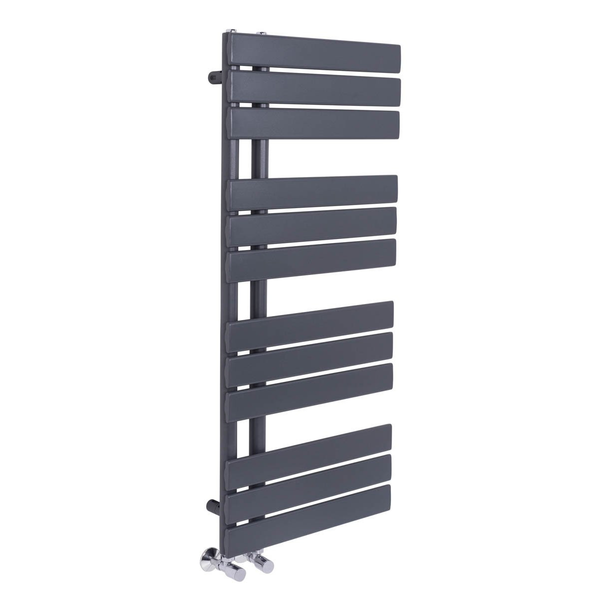 Designer Flat Panel Heated Bathroom Towel Rail Radiator. Up-market Designer Heated Towel Rails. Heated Towel Rails. - Stylish rail ladder style towel radiator. - 80mm Pipe Centres. Radiator Valves. Excludes: Radiator Valves.