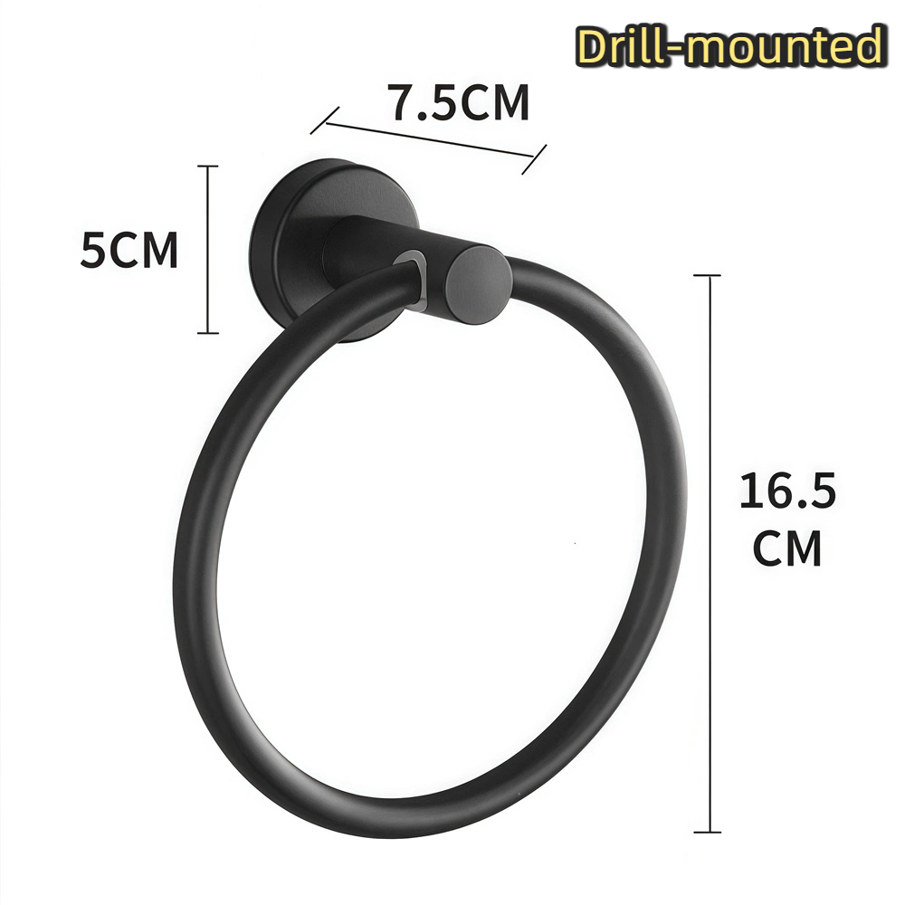 Easy to install with the included fittings, it holds standard-sized towels securely. Adhesive-mounted rings should not be fixed onto painted walls, wallpaper, plastered surfaces, or uneven areas. Attach the towel ring and tighten the set screw.
