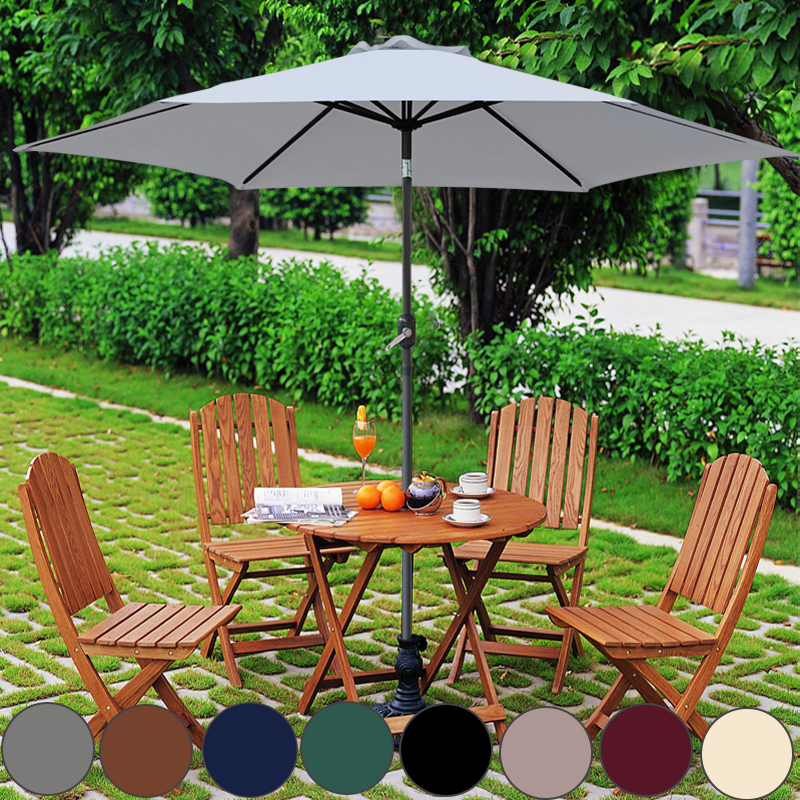 2.5M/2.7M/3M Round Garden Parasol With Crank And Tilt Black. 2.5M/2.7M/3M Round Garden Parasol. - High quality 180G polyester fabrics and included top vents. Lift slider to extend your parasol outwards.