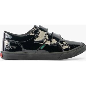 These are a pair of girls' black patent leather Kickers shoes with a low top design and round toe shape. They are in UK toddler size 6 and EU size 23, with a flat heel under 2.5cm. Perfect for casual occasions, these kick booties offer moderate cushioning and are made of durable leather material. The classic Kickers brand ensures quality and style, making them a practical and stylish choice for young girls.