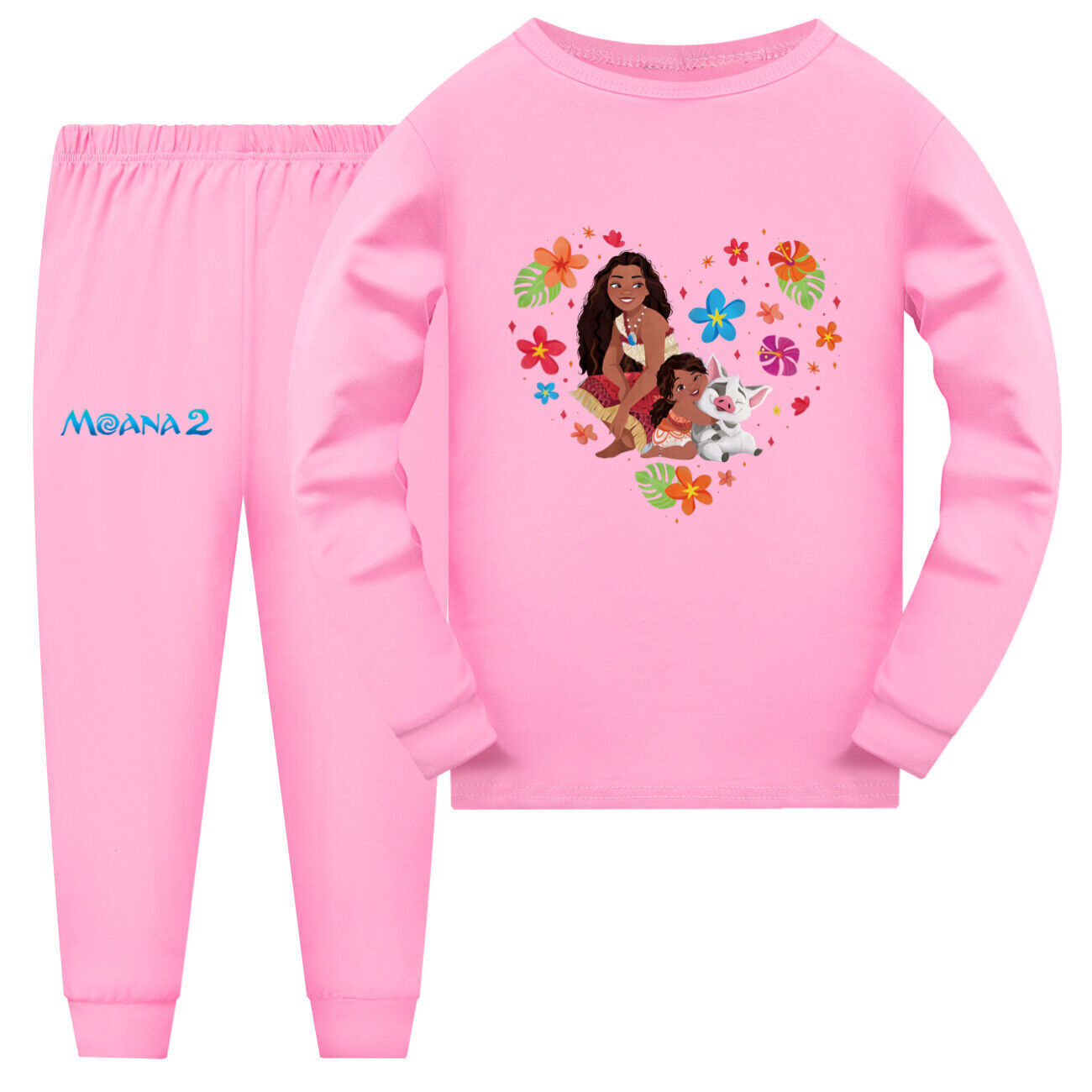 2PCS Kids Boys Girls Moana Costume Nightwear Tops Pants Outfits Pyjamas Pjs Set