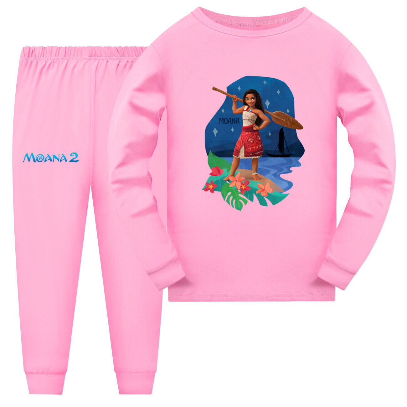 2PCS Kids Boys Girls Moana Costume Nightwear Tops Pants Outfits Pyjamas Pjs Set