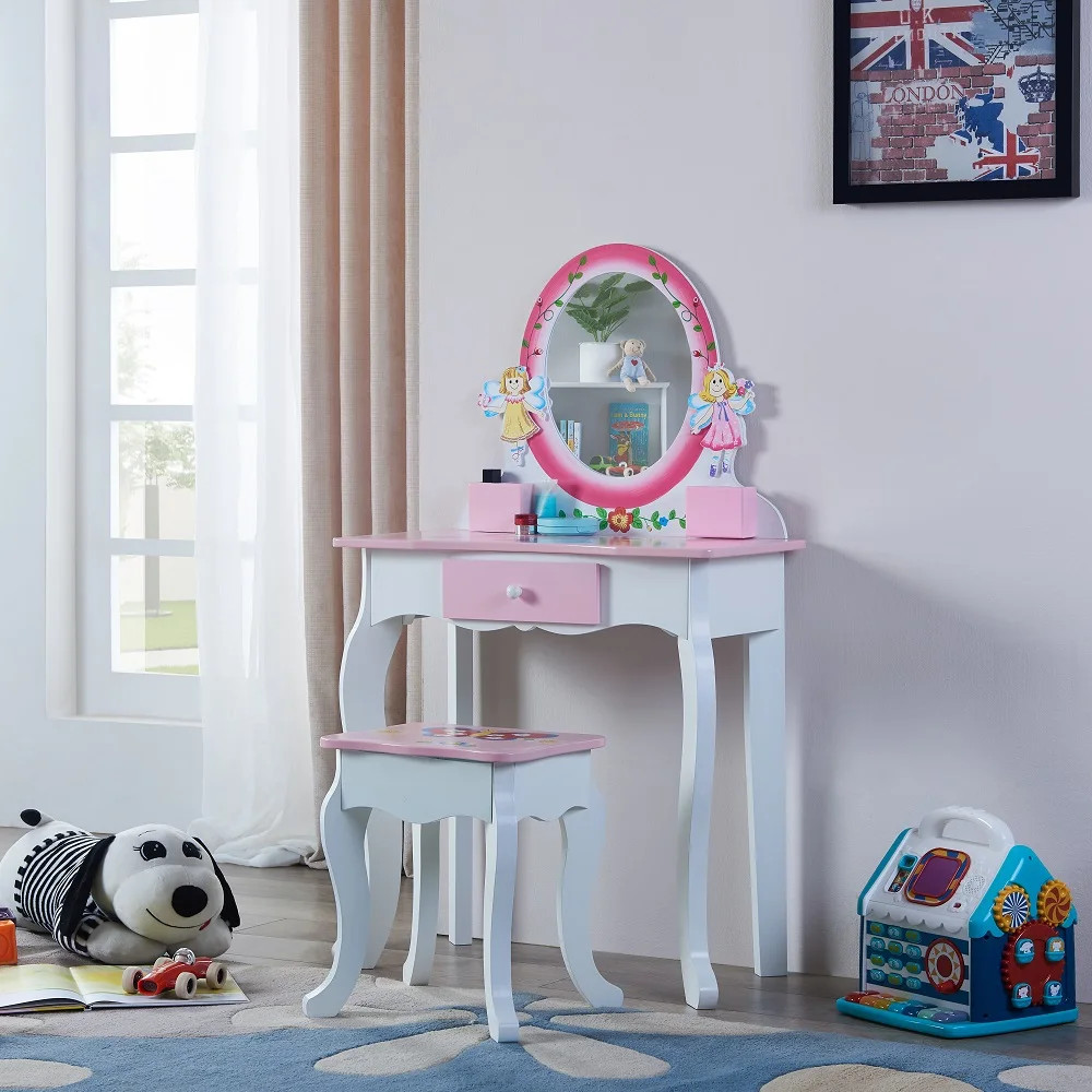 WODENY Kids Vanity Table Set Girls Dressing Table & Stool w/ Mirror & Drawer. A great gift for children & kids. Perfect for lovely girls to dress up. Main Colour: Pink+ White. 1 Make up table. We are confident with item quality, but SIZE DIFFERENCE is a big problem between different countries.