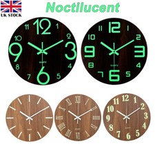 30CM Luminous Round Wall Clocks Wooden Night Glow Quartz Watch Silent Home Decor