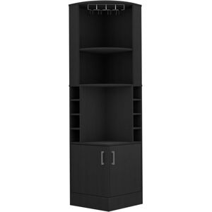 A beautiful piece of furniture that adds a luxurious touch to any home. The Kava Beijing Corner Bar Cabinet is perfect for storing liquor bottles and glasses; it has four bottle cubbies on the sides to hold 8 bottles of liquor. It has two large cabinets in its lower part that serve as a cabinet for large bottles; this is closed by two doors joined with metal hinges. The upper part has an open cabinet with support for glasses and a second available cabinet where you can display glasses, utensils, or any item. It has a display space that also serves as a beverage preparation table. This bar cabinet is designed with premium materials and will impress your guests and add a touch of elegance to your home. It is black, crafted from a manufactured wood finish, and covered in melamine. Dimensions: Height: 180 cm Depth: 46.9 cm Width: 46.9 cm Warranty: 1-year warranty coverage on wood parts - 1-year warranty coverage on hardware parts as their date of manufacture can be found on the lot number printed on the product box. Shipping details: Free shipping in Europe with a delivery time: of 3 to 8 days, depending on the customer's location, season, and weather factors. Other details: This product does not include decorative or background elements. Check that the box is in good condition - the product is well packed - and check with the help of the manual that the corresponding parts have been included. 17 Stories Colour: Honey