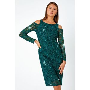 Roman Women's Sequin Cold Shoulder Lace Midi Stretch Dress in Green Size: 10 - Green - Size: 10 | ✔ Check At Store | £45.00 |