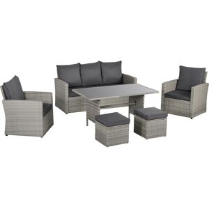 This luxury 4 PCS garden sofa set from Outsunny provide a multi-person seat for your friends and family. The conservatory furniture is made of lightweight, but robust aluminium frame wrapped PE rattan wicker with special woven for stylish and extra durability. A modern coffee table with tempered glass provides a space for drinks, snacks, books. Decorative and functional, this outdoor furniture creates an inviting setting that you and your family will want to use all throughout the year.Features:4 pieces rattan sofa patio set includes 1 double sofa, 2 single-sofas and 1 coffee tableSuitable for outdoor park, garden, patioCoffee table with tempered glass provides a space for drinks, snacks, booksMade from quality aluminium frame and all-hand woven PE rattan wickerThick padded cushion and backrest for extra comfortCushion cover with zip for easy remove and washableAssembly required