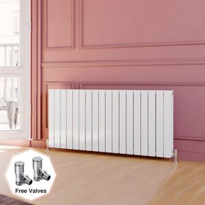 Horizontal White 600x1368mm Designer Radiator This astonishing White 600 x 1368 mm horizontal flat panel radiator can become a reflection of your home's interior design,stylish and efficient that will inspire as much as they warm, Also it has a super heat output,which gives maximum efficiency when it comes to keeping your house warm,even in the coldest months. Product Features: Designer radiator with double panel White powder coated finish High heat output Fixing includes: wall brackets,plug and vent Please note: This item does not include radiator valves Size may vary due to manufacturing process by +/-20mm if the stated size Dimensions: Height: 600mm Width: 1368mm Accreditations & Testing: Material: Low carbon steel Manufactured in accordance with BS EN 442 Registered: Complies with ISO9001:2008 Pressure tested to 10 bar / maximum working pressure 7 bar Suitable for all UK central heating systems