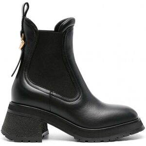 The Gigi boots are Moncler's take on the classic Chelsea boots. The flared heel assures a fresh feel, while logo-shaped hardware on the back adds a branded finishing touch Colour: Black Composition: 100% Calf Leather/100% Fabric Care: See Care Label Features: Black Calf Leather Smooth grain Gold-tone logo plaque to the rear Square toe Elasticated side panels Pull-tab at the heel Branded footbed 70mm mid block heel Ridged rubber sole Ankle length Slip on style