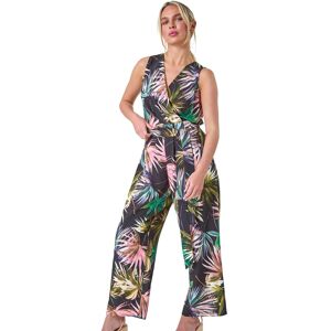 Petite Tropical Print Wrap Jumpsuit from Roman. This piece is sure to become a staple in your Summer wardrobe! Cut from a cool and comfortable woven fabric, this piece features a feminine v-neckline created by its wrap shape and is designed in a sun-ready sleeveless style. Adorned in a fun tropical print, this jumpsuit is belted for a flattering fit. It’s full-length style, pull-on shape and practical pockets make it perfect for those warm holiday evenings. Simply add heeled wedges and sunglasses and you're holiday ready!