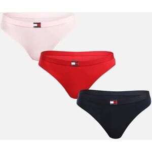 Great-value 3-pack of Tommy Hilfiger Women's Thongs in Pink, Red, and Navy Heritage flag logo badge stitched to the centre of the stretch waistband Non Returnable Due to Hygiene Reasons Recycled fabric mix High-cut leg Fabric Composition: 95% Regenerative Cotton / 5% Elastane Manufacturer Colour: Primary Red / Light Pink Rib / Navy MPN: uw0uw05641-0v5 Our Collection at Boxers and Briefs contain only the highest quality Tommy Hilfiger Womens Underwear. The Heritage logo range is a key essential for everyday wear. Tomm Hilfiger women's thongs size guide: X-Small (UK size 6, waist: 61-65cm, hips: 87-91cm), Small (UK size 8, waist: 66-71cm, hips: 92-97cm), Medium (UK size 10-12, waist: 72-77cm, hips: 98-103cm), Large (UK size 12-14, waist: 78-83cm, hips: 104-109cm), and X-Large (UK size 14-16, waist: 84-89cm, hips: 110-115cm)