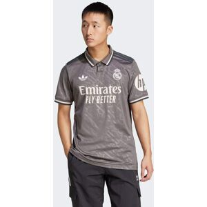 Elegance is their identity.The embossed RMCF monograms repeating across this Real Madrid third jersey borrow their distinctive look from the lettering used on traditional Madrid street signs.Standing out from the classy design, the iconic Trefoil returns to an adidas match shirt after a long break.Behind it all, AEROREADY keeps football fans dry and comfortable as they shout their support.This product is made with 100% recycled materials.By reusing materials that have already been created, we help to reduce waste and our reliance on finite resources and reduce the footprint of the products we make.Sustainability and Ethics:MADE IN PART W RECYCLED MATERIALS.FEATURES:-Regular fit.-One-button polo collar.-100% polyester (recycled).-AEROREADY.-Side mesh inserts.-Real Madrid embroidered crest.