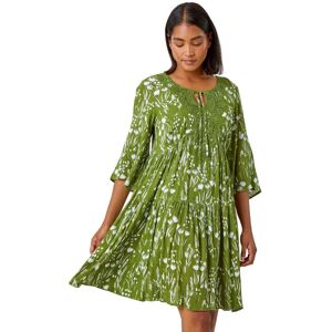 Roman Womens Floral Print Lace Detail Smock Dress - Green - Size 18 Uk