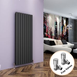 Elegant - Vertical Designer Radiator Flat Panel + Angled Radiator Valves 1600 x 452 mm Anthracite Single