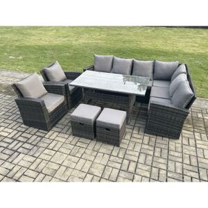 This patio corner sofa set can be used both indoors and Outdoor,with high quality PE rattan and durable galvanized steel construction for sturdiness and long lasting. Outdoor garden furniture can also be placed on the patio or balcony,The design of this rattan furniture is a perfect blend of country chic and modern minimalism, adding an elegant touch to your house. Set Dimensions: • 2 x Big footstool :65L x 65W x 34H cm • 2 x Chair: 74W x 69D x 79H cm • 1 x 3 seater sofa with two arm : 170L x 69D x 79H cm • 1 x 3 seater sofa with single arm: 160L x 69D x 79H cm • 1x Dining Table Dimension: 140 L x 80 W x70 H cm (Transparent tempered glass ) Dark grey mixed rattan with dark grey fabric .Color may some difference due to light or monitor .we are unable to return the item due to color problem . Items Comes Flat Packed And Easy Assemble,Sturdy Galvanized Steel Tube Metal Frames With Powder Coating To Prevent The Rust Flat PE Rattan Completely Made By Hand, 5mm Thickness transparent