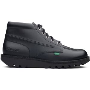 The Original Kick Hi Junior Boot From Kickers Is Ideal For Back To School And Comes In This All Black Leather Upper And Has A Chunky Sole, Metal Lace Eyelets With Thick Laces, Tonal Stitch Detail Throughout Plus A Leather Floret Attached To The Laces And The Iconic Small Kickers Logo On The Side.