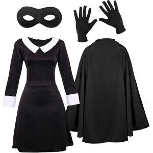 CHILD'S HEROIC PRINCESS COSTUME: Put on your disguise and save the Kingdom this World Book Day, with our Child's Heroic Princess Costume! Stand out and feel like royalty as you attend the next fancy dress event! COSTUME DETAILS: Your Child's Heroic Princess Costume includes a Black Dress with White Cuff and Collar detail, a long Black Cape with hook and loop fastening, a Black Eye Mask with a comfortable elastic strap, and a pair of Black Gloves, the perfect look for you this World Book Day! AVAILABLE IN MULTIPLE SIZES: Your Child's Heroic Princess Costume is available in multiple sizes from Small to X-Large: Small - 4 - 6 Years - Chest 24/26" (61/66cm), Waist 20/22" (51/56cm), Length 26" (66cm), Arm Length 18" (45.5cm) Medium - 7 - 9 Years - Chest 28/30" (71/76cm), Waist 24/26" (61/66cm), Length 28" (71cm), Arm Length 18.5" (47cm) Large - 10 - 12 Years - Chest 30/32" (76/81cm), Waist 26/28" (66/71cm), Length 28" (71cm), Arm Length 19" (48cm) X-Large - 13 - 14 Years - Chest 32/34" (81/86cm), Waist 28/30" (71/76cm), Length 30" (76cm), Arm Length 19" (48cm) ONE SIZE FITS MOST: The Black Cape is available in just one size, measuring a full length of 29" (73cm), designed to leave you feeling comfortable and have no issue saving the day! PERFECT FOR WORLD BOOK DAY & OTHER EVENTS: This Child's Heroic Princess Costume is not only perfect for World Book Day, but for any other fancy dress events you're attending this year!