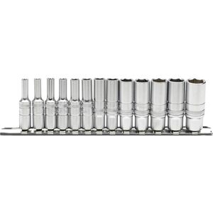 General Description This is a high-quality metric socket set designed for professional and DIY use. Made from durable chrome vanadium steel, the sockets are hardened and tempered for long-lasting performance. The set includes various sizes of sockets, extension bars, and a ratchet, all stored in a sturdy plastic case for easy organization and transport. Technical Specifications Material: Chrome vanadium steel Finish: Micro satin Number of sockets: 12 standard sizes (4mm to 13mm), 7 deep sockets (5mm to 13mm) Ratchet: 72-tooth reversible with soft grip handle Extensions: 50mm and 150mm wobble extension bars Additional tools: Sliding 'T' bar, universal joint, spinner handle Compatibility and Accessories Compatible with standard 1/4 inch drive tools Includes a variety of sockets and extension bars for different applications Supplied with a reversible ratchet and quick-release mechanism for ease of use Installation Insert the desired socket onto the ratchet or extension bar Ensure the
