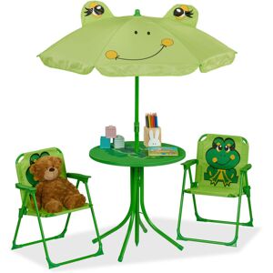 Relaxdays - Children's Camping Furniture Set with Parasol, Folding Chairs & Table, Kids' Garden Ensemble, Frog, Green