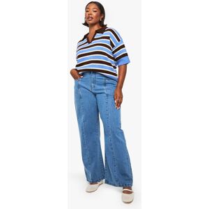 Boohoo Womens Plus Seam Detail Wide Leg Trouser - Blue Cotton - Size 26 Uk | ✔ Check At Store | £16.00 |