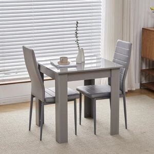 Norden Home Modern 3 Piece Dining Room Table And Chairs Set, Wooden Square Table With 2 Chairs For Small Space Apartment Space Saving Grey