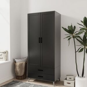 The Wardrobe combines style and practicality, making it a perfect fit for modern bedrooms. Featuring a sleek two-door design, it offers ample storage with a spacious hanging rail for clothes and two convenient drawers for smaller items. Its clean lines and neutral finish blend effortlessly with contemporary interiors. Crafted with durable materials, this wardrobe is built to last, ensuring your belongings stay organized. The hanging rail provides ample space for clothing, while the two deep drawers accommodate accessories, linens, or everyday essentials. Measuring 180cm in height, 75cm in width, and 46cm in depth, it fits comfortably in most bedroom layouts. The drawers, with a height of 9.6cm, width of 66.2cm, and depth of 30cm, are ideal for compact yet accessible storage. Add a touch of modern elegance to your room with our Devon 2 door wardrobe. Lark Manor Finish: Black White