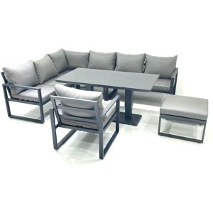 This deluxe aluminum adjustable rising sofa dining set is a great addition to your patio or garden, made of high quality Alloy aluminum and powder coating for sturdiness and structural durability. Set Dimensions: • 1 x Left Sofa with single armrest: 125W x 70D x 78H cm • 1 x Right Sofa with single armrest: 125W x 70D x 78H cm • 1 x Corner Sofa:70L x 70W x 78H cm • 1 x Armless Sofa Size: 60L x 70W x 78H CM • 2 x Fully Assembled Stool: 40L x 40W x 36H CM • 1 x PC Adjustable dining table : 140L x 80W x 48/70H cm (Low 48cm Height 70 cm With Black Tempered Glass) Dark grey powder coated with dark grey fabric .Color may vary little due to light or monitor .we are unable to return the item due to color problem .please contact us before purchase if you have requirement on color saturation. Table can stop at any height between 48-70 cm .Cheap Price Compared With Other On or Offline Store For Rising Table Set Items Comes Flat Pack And Easy Assemble, Alloy aluminum Frame With Powder Coating To