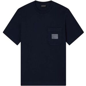 Cotton-jersey, crew-neck t-shirt by Emporio Armani. The garment features a patch pocket on the chest, enhanced by a genuine leather patch with an embossed Emporio Armani logo Colour: Navy Composition: 100% Cotton Care: Machine Wash Only Fit: Regular fit Features: Navy Jersey Crew neck Short sleeves Patch pocket Signature genuine leather logo patch