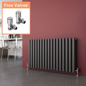 Elegant - Anthracite Radiators Horizontal Double Heater 600 x 1003 mm Column Oval Panel Central Heating Designer Bathroom Radiator + Angled Radiator
