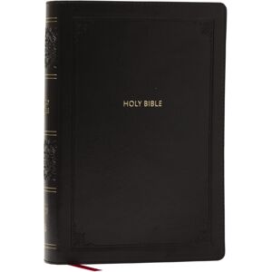 Easy-to-read giant comfort print with cross-references at the end of verses. Exploring God’s Word on the go just got easier. This edition not only includes the full text of the trustworthy New King James Version in an easy-to-read giant print, but it is also small enough for everyday use.Easy navigation with thousands of cross-references conveniently located at the end of verses add to this exceptional reading experience. Features include:End-of-verse cross-references help you find related passages quickly and easilyVerse-style Scripture format starts each verse on a separate line, so it’s easy to navigate the textLine-matched for improved clarity when readingWords of Christ in red help you quickly identify Jesus’ teachings and statementsSmyth-sewn bindingConcordance for looking up a word’s occurrences throughout the BibleFull color maps show the layout of Israel and other biblical locations for better contextA ribbon marker to easily navigate and keep track of where you were readingClear and readable 13-point NKJV Comfort Print®
