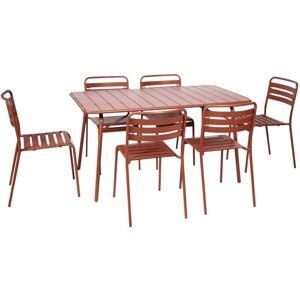 Product Highlights Garden table with slats and rounded edges Simple rainwater drainage Steel with anti-rust treatment This metal bistro set is perfect for your garden or balcony terrace. Its timeless design will blend in and adapt to any outdoor decor style. The Amelia bistro table and chairs are perfect for enjoying convivial moments with your loved ones. The Amelia garden set in steel is ideal for those who want a durable and attractive table. It features an anti-rust treatment, meaning it can be used outdoors without fear of damage from moisture or rain. The table and chairs also have charming slats and rounded edges. Finally, rainwater can easily escape through the slits. Steel: Electrophoretic treatment Table: L 160 x W 90 x H 72.5cm (19kg) 2x Armchairs: L 50.4 x W 53 x H 79.5cm (5kg) 4x Chairs: L 44 x W 52 x H 79cm (4kg)