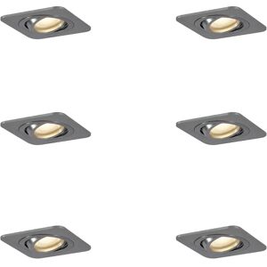 Qazqa - Set of 6 Rounded Recessed Spotlights Gunmetal GU10 50mm Adjustable IP44 - Alberto | ✔ Check At Store | £39.95 |