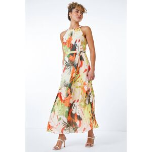 Petite Tiered Tropical Print Midi Dress by Roman UK Brand new to the Petite collection this tropical print midi dress is sure to become a wardrobe winner Created with a flattering halter neckline and multi tiered frill skirt with a detachable waist tie Fastened with a button and concealed zip at the back of the neck this glamorous maxi dress is a real winner for those special occasions throughout Summer with the addition of a clutch bag and shrug Add this dreamy dress to your holiday collection for sunset dinners and cocktails by the sea Womens Regular fit True to size 100 Polyester Lining 100 Polyester Machine Washable Concealed Zip Button Fastening