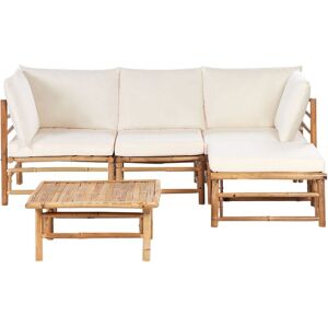 BELIANI Garden Corner Sofa with Table 4 Seater CERRETO Left Hand Bamboo Wood Off-White | ✔ Check At Store | £389.99 |