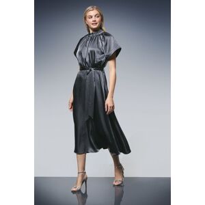 Principles Womens Gathered Neck Flared Skirt Satin Midi Dress - Grey - Size 12 Uk