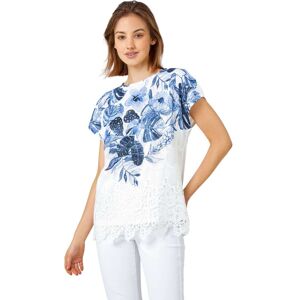 Roman Womens Floral Print Lace Trim Stretch T-Shirt - Blue - Size 12 Uk | ✔ Check At Store | £24.00 |