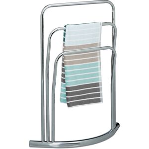 With this towel ladder rack, you can dry your clothes or towels in a compact manner. The 3-rung towel stand can be freely positioned without any pesky drilling. It is quickly assembled and can be used flexibly. Use the valet to hang up washcloths, towel and more in your bathroom. Alternatively, you can of course also use it to store clothes in bedroom or hallway. With its modern design, this towel valet is a real eye-catcher. Freestanding Towel Holder Details - Total size H x W x D: app. 86 x 58 x 30 cm - Capacity per rung: max. 2 kg - Weight: app. 1.4 kg - Material: Iron - Colour: Black, wood look Towel Holder Dimensions - Distance between rails: app. 13 cm - Diameter per rung: app. 1.5 cm - Side bars W x D: app. 1 x 2 cm Handy Towel Stand - Decorative ladder design with 3 rungs - For towels, beach towels and washcloths - Offset rails for ideal air circulation - Flexible positioning - No drilling - For bathroom, bedroom or kitchen Included in Delivery - 1 x Towel Stand in Pieces
