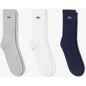 Men's Lacoste 3 Pack Sport Mens High Cut Socks - Silver Chine/White-Navy Blue TYA - White/Navy - Size: 9/9.5/10/10.5/11